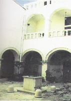 Inside the cloister with plaque at the foot of the tank , in ricordo del ritorno dei Frati a Valenzano